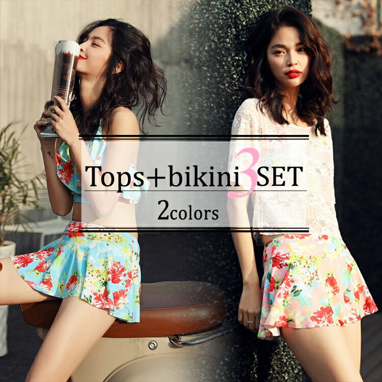 レディース 水着 3点セット ビキニ ブラ パンツスカート トップス付き オシャレでかわいいママ水着★