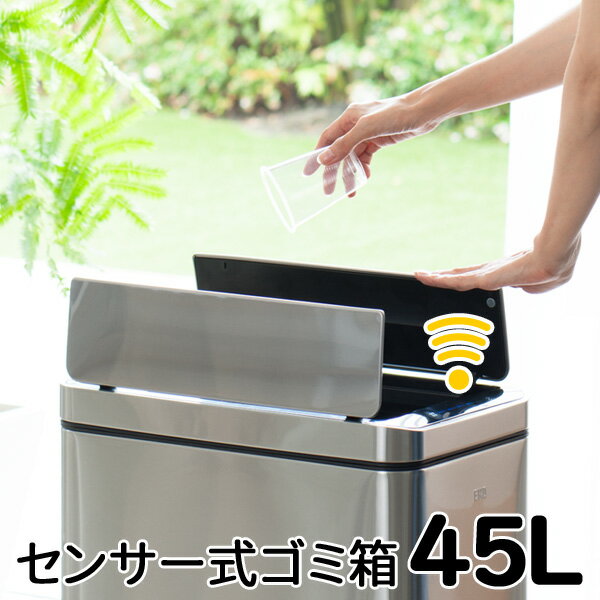 EKO ゴミ箱 デラックス ファントムセンサービン 45L シルバー(ふた付きごみ箱 センサー式ゴミ箱 蓋付き おしゃれ キッチン 高性能 会社 人気 自動開閉 45リットル リビング 子供部屋 スタイリッシュ クール ダストボックス)(キャッシュレス5%還元)
