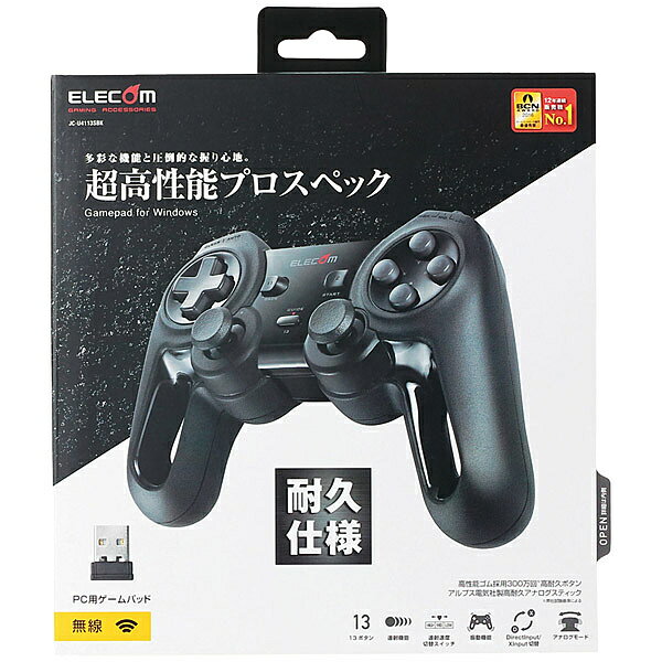 【送料無料】ELECOM JC-U4113SBK 無線ゲームパッド/ 13ボタン/ Xinput/ 振動/ 連射/ 高耐久/ ブラック【在庫目安:お取り寄せ】