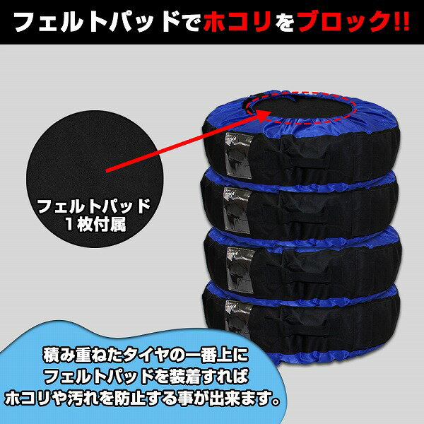 ・フェルトパットを使用することでタイヤの積み重ね時のホコリもシャットアウト! サイズ ・直径 : (約)Φ55.7cm〜(約)Φ76.2cm迄 ・タイヤ幅最大 : 25.5cm迄 ・最大対応重量:30kg迄 カラー ・レッド ・ブルー ・シルバー セット内容 ・タイヤバッグ×4 ・フェルトパッド×1 送料 送料はページ内に記載のある送料となります。