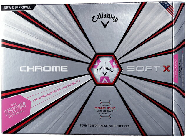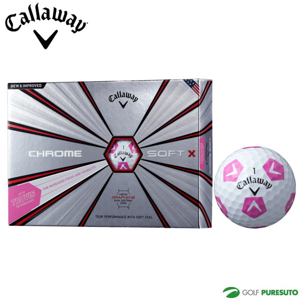 \10日〜P10倍★クーポン配布中/【日本仕様】キャロウェイ クロムソフト X ゴルフボール トゥルービス シェブロンマーク入り ホワイト/ピンク 1ダース