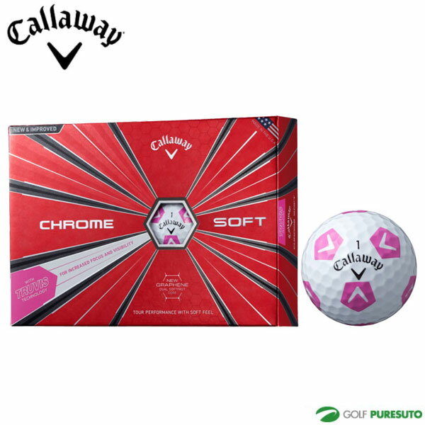 \10日〜P10倍★クーポン配布中/【日本仕様】キャロウェイ クロムソフト ゴルフボール トゥルービス シェブロンマーク入り ホワイト/ピンク 1ダース