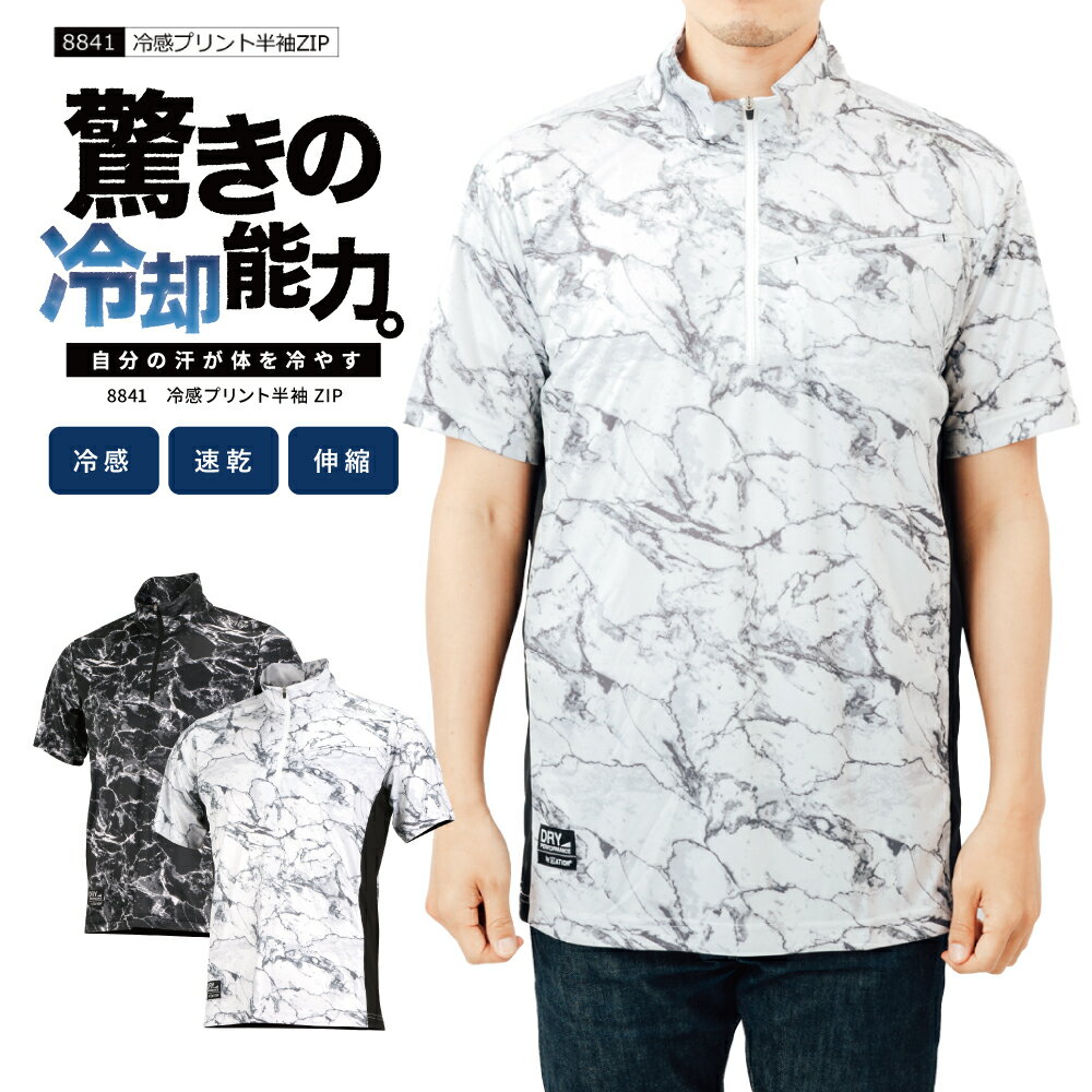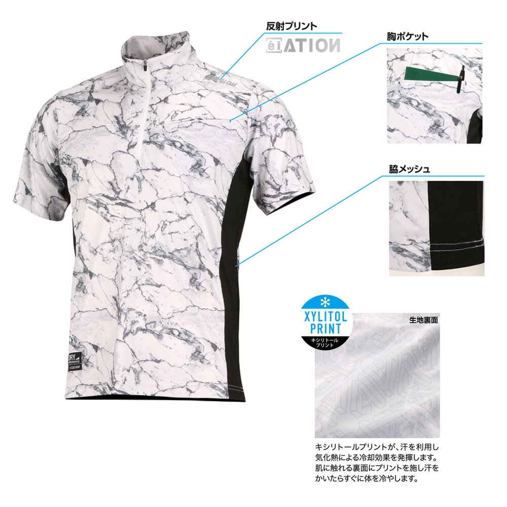 半袖 メンズ メッシュ ジップ キシリトールプリント 夏 涼しい 接触冷感 消臭 抗菌 吸水速乾 速乾 クール UV UVカット スポーツ ゴルフ 作業服 作業着 仕事着 仕事 ワークウェア クールビズ ワークウエア 普段着 インナー トレッキング 釣り 8841 冷感プリント半袖ZIP