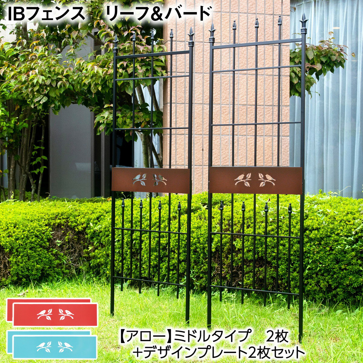 アイアンフェンス IBフェンス リーフ&バード アロー ミドルタイプ 幅52.5cm 高さ163cm 2枚セット デザインプレート2枚付き ガーデンフェンス トレリスフェンス ibf-pstar163-2p-blk