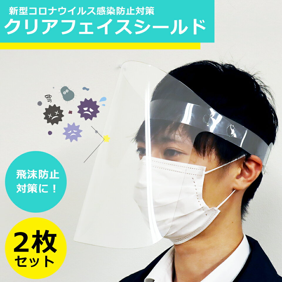 【6/20より順次発送】フェイスシールド 2枚セット フェイスガード フェイスカバー フェイスマスク 曇り止め付き 男女兼用 洗って使える FACE SHIELD 洗えるマスク 洗える