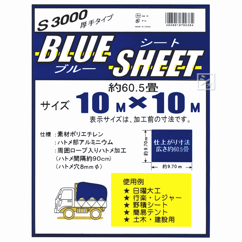 ブルーシート ビニールシート 厚手 #3000タイプ 建築・土木・野積み・養生等の多目的シート サイズ (10×10m) 2枚セット【厚手で丈夫な#3000番手!台風・地震等の災害・防災で大活躍】