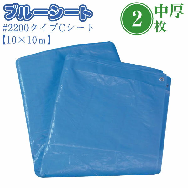 ブルーシート ビニールシート 中厚タイプ #2200 建築・土木・養生等の多目的シート サイズ (10m×10m) 2枚セット